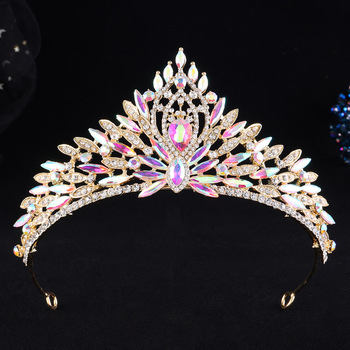 Couronne de reconstitution historique en cristal rose rose plaqué or Couronne de reine de mariée en strass