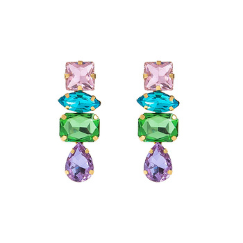 Vente en gros de boucles d'oreilles en verre géométriques en diamant coloré simples à la mode boucles d'oreilles pour femmes de mariée super étincelantes